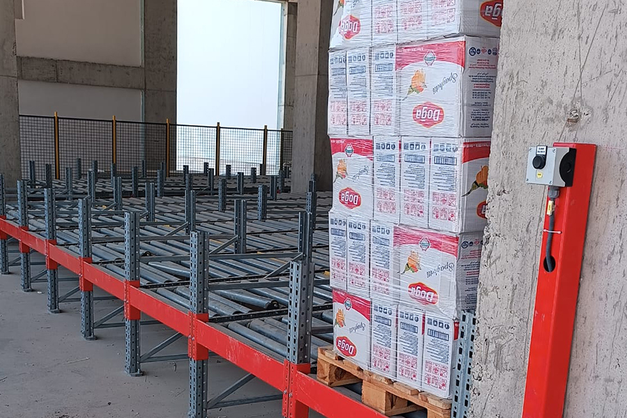 In cooperation with the Turkish company UCGE, we equipped a high bay warehouse for finished products from Goymen Gida in Gaziantep (Turkey). There are two aisles with cranes, one transport shuttle and complex conveyor system in two floors with output through a gravity rack.
