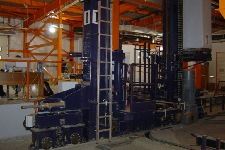 A special system of shuttle cars, conveyors and storage retrieval machines has been developed to move transport units with dimensions 14.000 × 1.400 × 1.400 mm and weight 5.500 kg.