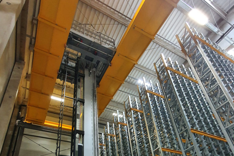 Na začetku leta 2020 smo v tesnem sodelovanju z Robotiko Kogler dokončali dvigalo, ki je po svoji obliki mostno dvigalo, ima pa enako funkcijo kot sicer regalna dvigala – transportne enote, ki so v tem primeru orodja za vlečenje aluminijastih profilov, uskladiščuje v visokoregalno skladišče z več vrstami regalov.